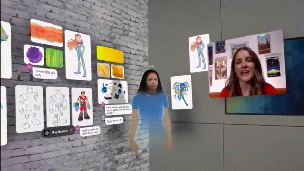Developers attending the Build conference in Seattle Monday saw Spatial cofounder Anand Agarawala give a demo of a virtual meeting where participants–all wearing HoloLens–collaborated on the design of a robot hologram. Participants in other locations were represented by holographic avatars. They all could access data from Microsoft productivity apps; Since HoloLens now does decent hand tracking, the people could pick up a virtual document and toss it over to another participant in virtual space. They could even adjust the size and positioning of the robot with their hands. Participants could also write annotations around the design.